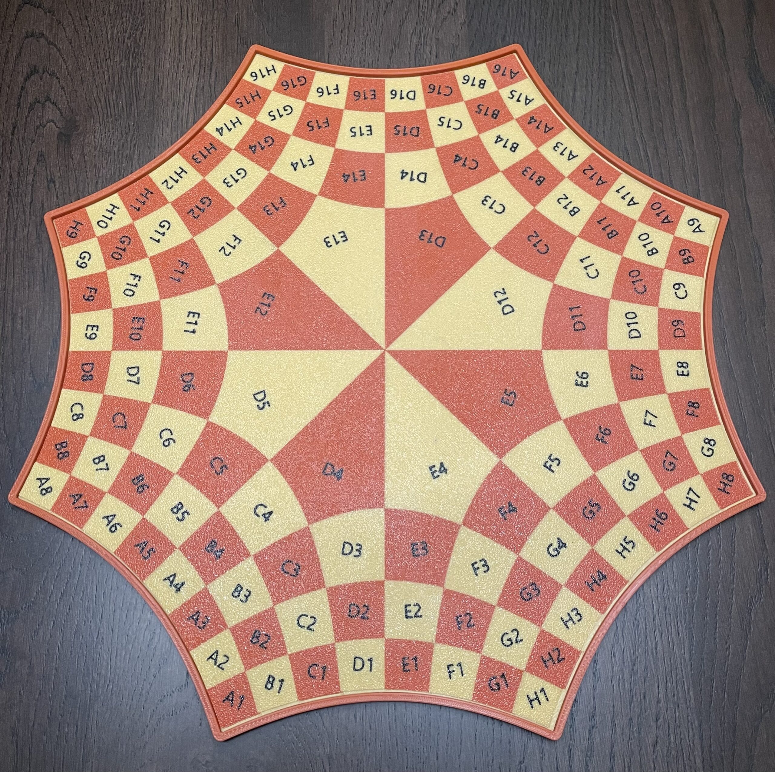 Net als bij het normale schaken zijn de 128 velden ook voorzien van codes, zodat achtereenvolgende zetten overzichtelijk genoteerd kunnen worden. Deze codes zijn op een apart inlegvel aangegeven.