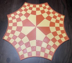 In 2018 was Leeuwarden culturele hoofdstad van Europa. Leeuwarden is ook de geboortestad van M.C. Escher. Naast een tentoonstelling met zijn werk werd in het noorden van Friesland met acht grootschalige graantekeningen een eerbetoon aan Escher gebracht. Een van die graantekeningen was het Conforme Schaakbord van Hans Kuiper. Daarop gebaseerd ontwikkelde Walt van Ballegooijen het spel Dubbel schaken. Hij vroeg zich namelijk af of dat bord geschikt was voor een schaakspel voor vier personen. Hij maakte een 3D-geprinte versie om dat met een aantal personen uit te proberen. Dat tot ieders genoegen.
