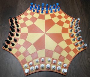 Het blijkt een spel met een heel extra dynamiek vergeleken met een gewoon schaakspel. Er zijn wel wat extra regels nodig. Gekozen is om met twee teams met elk twee spelers te spelen. Naast regels voor bewegingen door het centrum, zijn er ook regels nodig om te bepalen wie wanneer wint. Zo mag een speler wiens koning is geslagen doorspelen totdat ook de koning van zijn maat geslagen is. Een team is dus pas verslagen nadat beide spelers hun koning hebben verloren. Dat maakt het spel extra leuk.